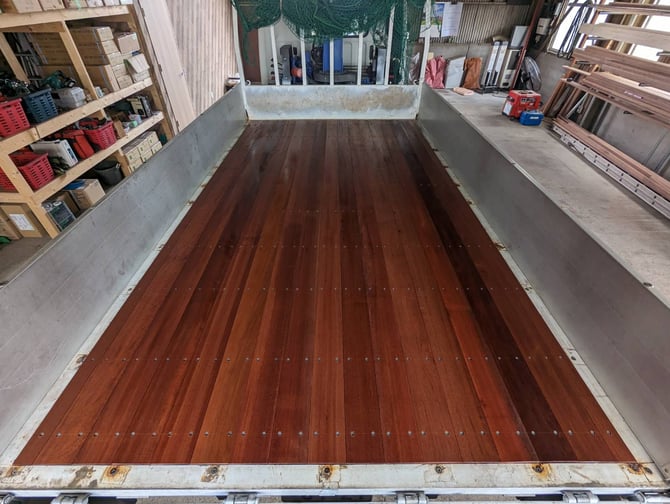 荷台板を留めているボルトやビスが塩害によって錆びてしまい、ベニヤにも腐食がみられたため、困ってみえた所に弊社を知り、車両を持って飛び込みで依頼に来られました。