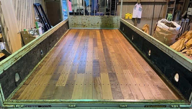 建設機械のレンタル事業をされている会社さまで、クレーン付き4t車の張替えです。