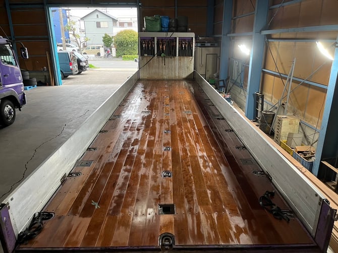 フックやプレートの飲み込みがあり、板を落とし込むのが大変な車両ですが、なんとか頂いた工期内で張替えを終えることが出来ました。