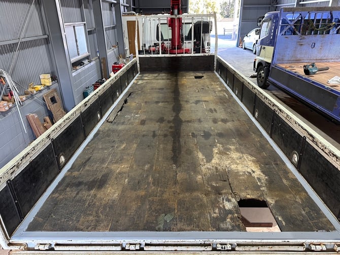 自社製品運搬や、資材運搬用の車両など用途は様々ですが、穴が空いた箇所にベニヤや縞板でカバーして使用されている会社さまも多いと思います。